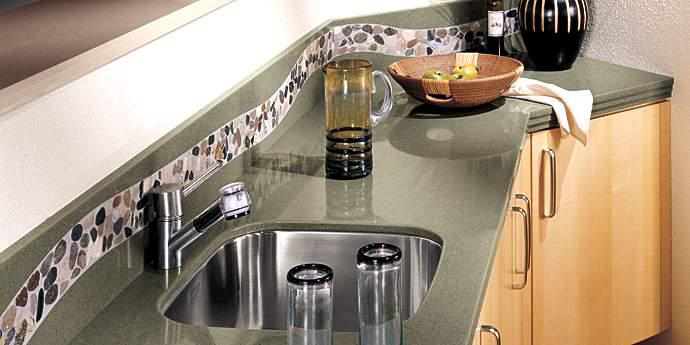Corian Quartz is 93% pure quartz crystal, which gives Corian Quartz a natural depth and radiance without the imperfections common in unimproved stone. And because quartz is one of nature’s strongest materials, Corian Quartz is also incredibly durable and resists both heat and scratches. Custom-fit to your exact specifications and virtually maintenance free—Corian Quartz is perfect for your home, naturally.